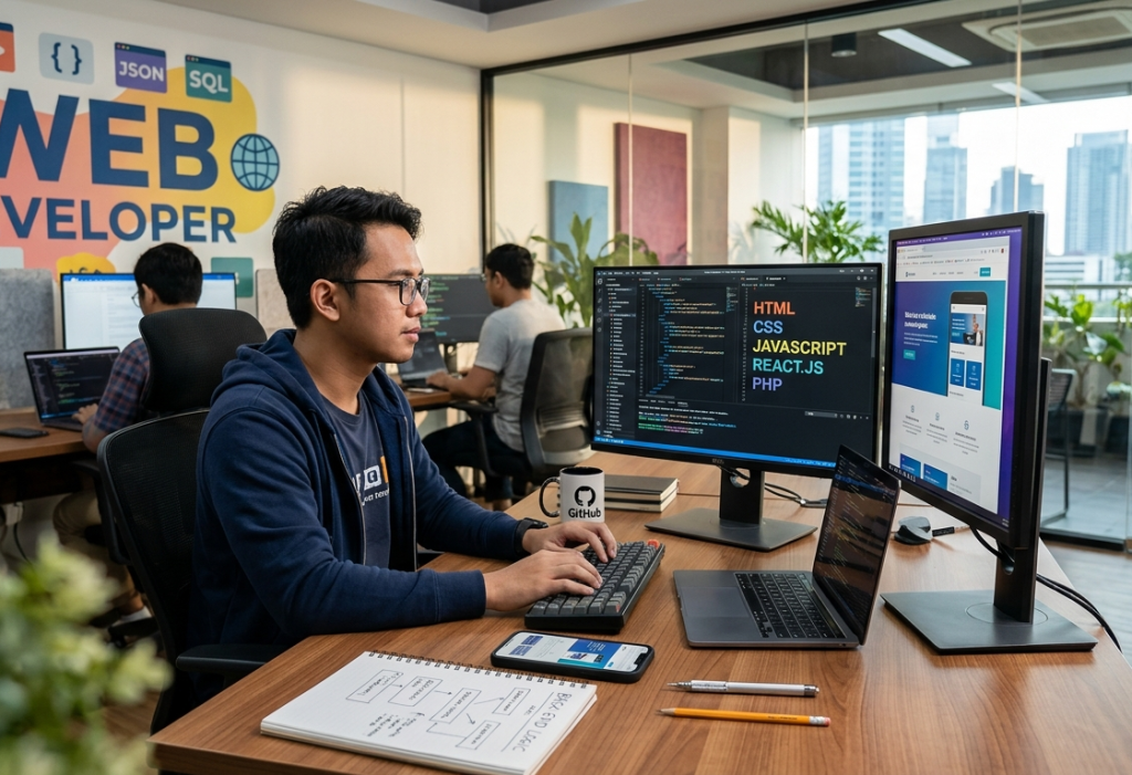 Dengan model kerja yang fleksibel, seorang Web Developer dapat bekerja secara penuh waktu di kantor (on-site), jarak jauh (remote), atau sebagai nomad digital. Di Indonesia, permintaan akan pengembang web terus tumbuh seiring banyaknya UMKM yang mulai beralih ke e-commerce dan aplikasi berbasis web.